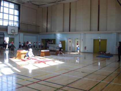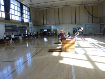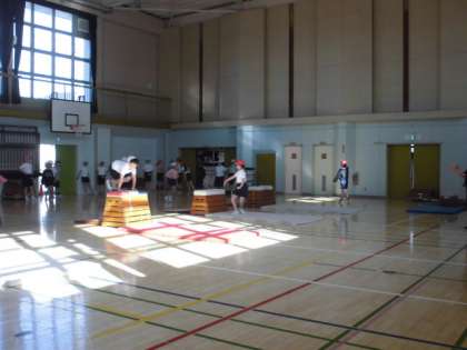 18日(月)4時間目、4年1組は体育の時間でした。「跳び箱運動」に取り組み、跳び箱を横長に置いた閉脚跳びと縦長に置いた閉脚跳びの練習をしました。子どもたちは、自分の課題に合う場所で繰り返し練習をしました。