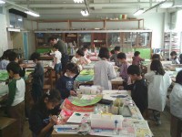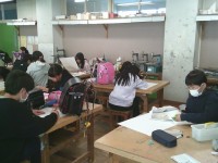 21日(木)1・2時間目、5年2組は家庭科の時間でした。2学期最後の家庭科です。最初に冬休みの宿題について話がありました。「できるよ 家庭の仕事」の学習として、冬休み中に衣服、住まい、食事のいずれかに取り組むという内容でした。黒板いっぱいに家庭でできる仕事が書いてありました。次に、ランチョンマットの完成に向けてラストスパートをかけました。すでに完成している人がミニ先生としてアドバイスをしている姿がありました。
