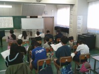 21日(木)5時間目、1年1組は2回目の書き初めの練習をしました。前回は十字点線入の用紙で書きましたが、今回は点線のないマス目の用紙を使いました。字のバランスをとることが要求されます。文字を飛ばしたり、行を間違えたりしないように手本を見ながら書きました。