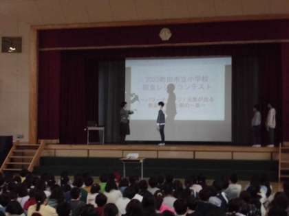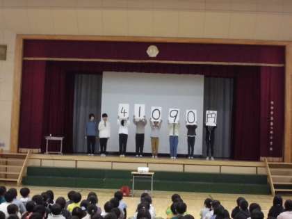 19日(月)朝会の続きです。「朝食レシピコンテスト」は小学生は2020年度から、中学生は2019年度から始まった町田市独自の取組です。アンケート調査から朝食を摂らずに登校する児童・生徒の割合が高いということが背景にあります。入選した6年生には、レシピ名や工夫したところ、家族からの感想を話してもらいました。朝会の最後は、企画委員会の6年生からユニセフ募金の報告をしました。たくさんの募金額に子どもたちも驚いていました。ご協力をありがとうございました。