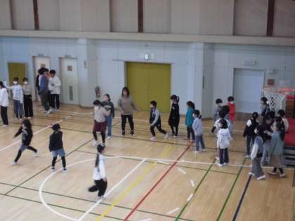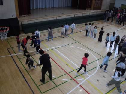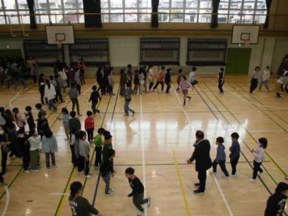 19日(月)は雨のため、校庭での長なわ跳び練習はできませんでした。雨の場合の練習計画も立てていましたので、中休みは全1組が、昼休みは全2組が体育館で練習をしました。使用するなわは、フロアを傷めないタイプの物にしました。写真は上から、1年1組、2年1組と5年1組、3年1組です。