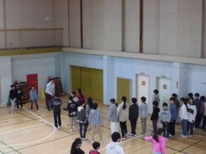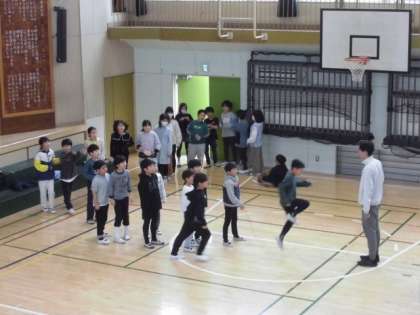 19日(月)昼休み、2組の子どもたちは体育館で長なわ跳びの練習をしました。校庭が使えない時は体育館で練習をします。床面を傷つけない細めのなわを使用します。「ハイ、ハイ」と声をかけ合う学級もありました。2回目の記録会にかける子どもたちの思いが伝わります。写真は上から、4年2組、6年2組です。
