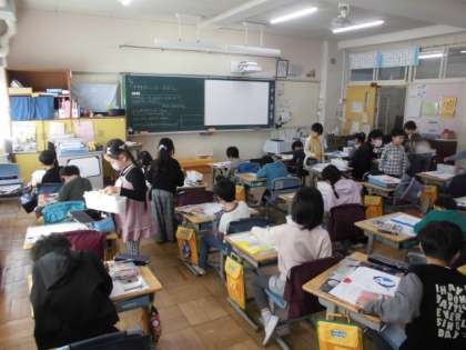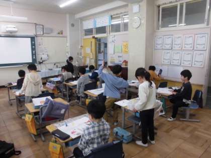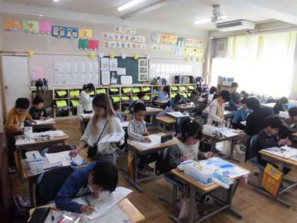 20日(火)1・2時間目、1年1組は図画工作の時間でした。先週から「できたらいいな こんなこと」に取り組んでいます。下がきをマジックペンやクレヨンで描き、最後に絵の具で背景を塗りました。