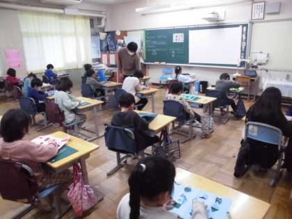21日(水)1・2時間目、2年1組は図画工作の時間でした。今回は初めてカッターを使うため、教室で相手との距離をとって行いました。「まどから こんにちは」と題した工作です。バランスを考えて、窓を作りました。実線は切る、点線は折ると決めてから下書きをしました。子どもたちは約束を守って活動しました。