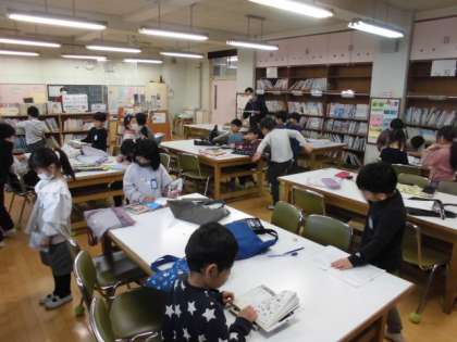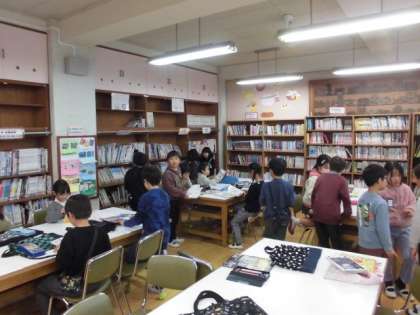 6日(水)4時間目、1年2組は図書の時間でした。最初に前回借りた本を返却しました。次に新しく借りる本探しをしました。友達に本のおすすめをする姿もありました。今年度の最終返却日は3月15日(金)です。毎年不明本が出ておりますので、ご家庭でも点検をお願いいたします。