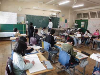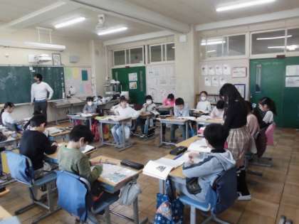 7日(木)5時間目、3年2組は国語の時間でした。「モチモチの木」の学習です。「登場人物の『豆太』は勇気のある子になれたのか」の問いについて、一人一人が考えを発表しました。