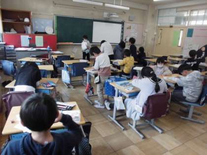 7日(木)5時間目、2年2組は生活科の時間でした。今回は1組の先生と学習しました。「明日へつなぐ 自分たんけん」と題した表紙作りと2種類の文章を書きました。文章は「こんな3年生になりたい」と「お家の人へ」です。