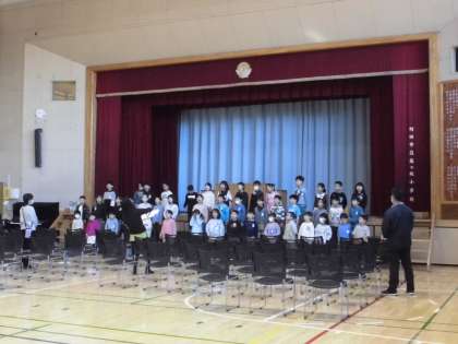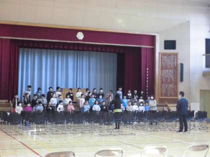 13日(水)1時間目、1年生は体育館で入学式の練習をしました。今回は音楽の先生も加わって歌の練習もしました。入学式では「歓迎の言葉と歌」の他に「校歌」も歌います。