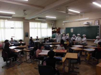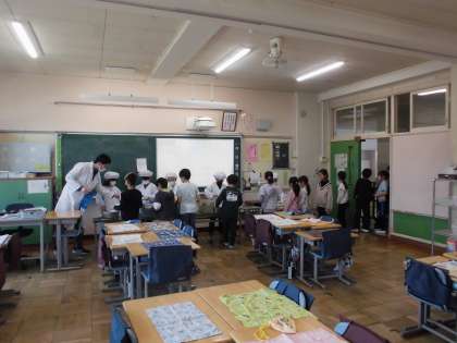 10日(水)から2年生以上は給食が始まりました。今年度から生活時程が5分早くなっていますが、子どもたちは昨年度までと同じように準備をしました。写真は上から、1組、2組です。