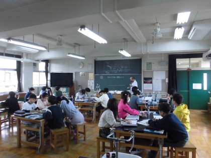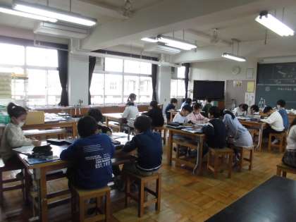 12日(金)1・2時間目、5年2組は理科の時間でした。講師の先生との学習です。単元名「天気の変化」から始まり、「今日の天気を記録しよう」をめあてに先生の話を聞きました。今後、タブレット端末を使って空の写真を撮っていくそうです。