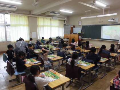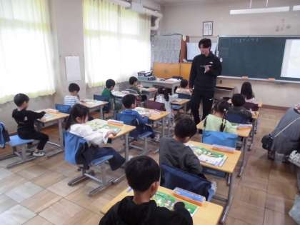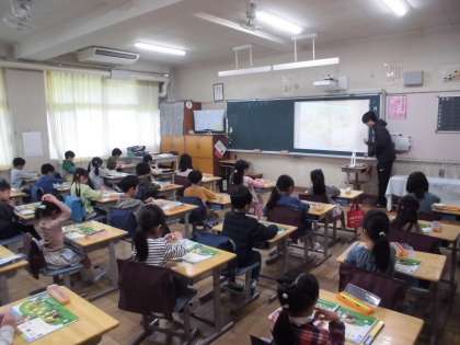 12日(金)3時間目、1年2組は算数の時間でした。「10までのかず」の単元からスタートです。教科書をしっかりと開き、見開き2ページに載っている動物の数を数えました。同じ数の動物がいることも分かりました。ブロックを出しての操作にもチャレンジしました。