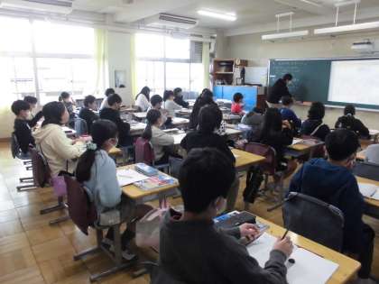 12日(金)4時間目、6年2組は社会科の時間でした。「わたしたちの生活とくらし」の単元です。暮らしと政治の結び付きについて、教科書の絵を見ながら考えました。子どもたちは車いすを使っている方や高齢者に気付いて、どうしたら住みよいかを考えていました。