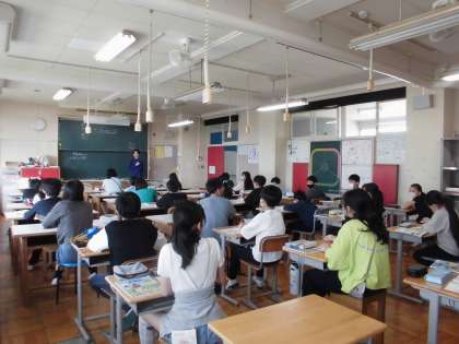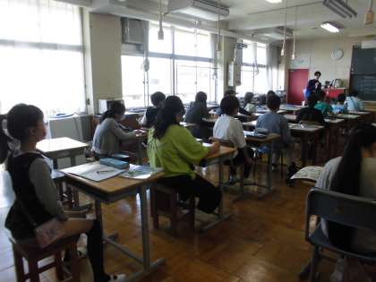 15日(月)1・2時間目、6年2組は家庭科の時間でした。講師の先生との初めての学習です。家庭科の学習についてガイダンスがありました。子どもたちは先生の話を聞きながら、自主的にノートにまとめていました。