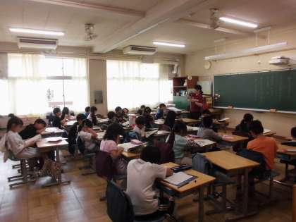 15日(月)4時間目、3年生はそれぞれに教室での学習でした。1組は社会の時間で方位を学習しました。2組は国語の時間で「わたしのさいこうの一日」について学習しました。