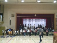 25日(木)の朝、前期に活動する委員会の紹介をしました。委員長がステージに登場し、順番に活動内容を話しました。写真は上から、給食委員、保健環境委員、司会の集会委員です。各委員会とも6年生がリーダーシップを発揮しています。