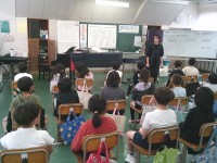 21日(火)1時間目、4年2組は外国語活動の時間でした。1組の先生と学習しています。今回は「あそびにさそおう」の単元です。数種類の遊びから3つを選んで友達とやりとりをします。最初に先生とボランティアとでやって見せました。