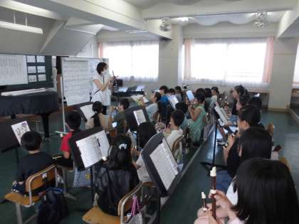 21日(火)1時間目、4年1組は音楽の時間でした。今月の歌「ゴーゴーゴー」を歌ってから、リコーダーで「風のメロディ」を吹きました。今回はシのフラットの指使いを学習しました。何度か音を出して安定した音色が出せるようになりました。