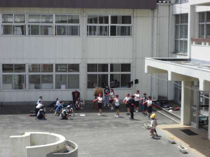 22日(水)中休み、応援団は上校庭で練習をしました。太鼓担当の人はメンバーがそろうまでに叩く練習をしていました。