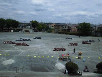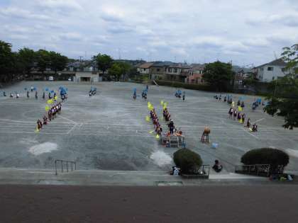 22日(水)3・4時間目、5・6年生はソーラン節の練習をしました。5年生と6年生とで大きな円を描いてから、次の隊形に移動します。クラス別の男女別になりウェーブをします。