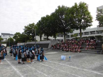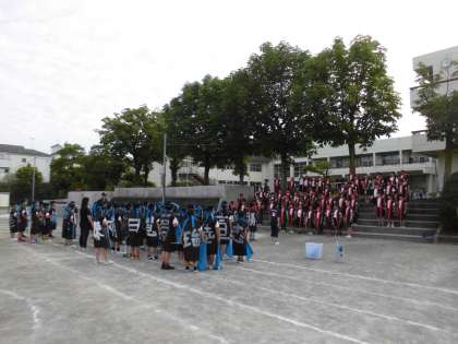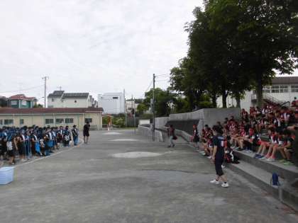 23日(木)6時間目、5年生と6年生はソーラン節の最後の練習をしました。練習後、「学年帰りの会」をしている6年生に、5年生全員がこれまでのお礼を言葉で伝えました。明日のリハーサル、土曜日の本番と一緒に踊ることができるのは、あと2回です。