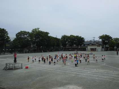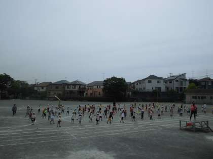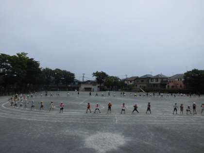 24日(金)運動会のリハーサルを低学年、中学年、高学年に分かれて行いました。最初は1・2年生です。ダンスを入場から退場まで通しました。