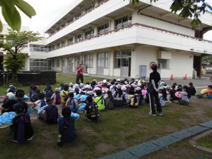 24日(金)3時間目、3年生と4年生は運動会のリハーサルをしました。最初に上校庭に集合し、先生の話を聞きました。次に自分の席まで移動しました。当日はテントの中に入ります。