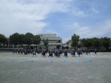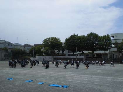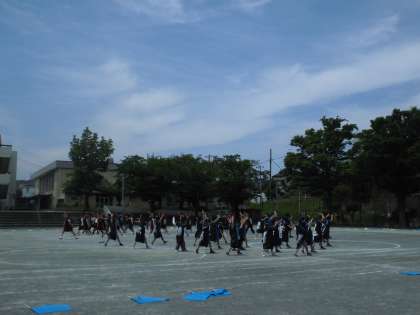 24日(金)4時間目、5・6年生のリハーサルの様子です。5年生はテントの方を向いて踊ります。在校生の前でその勇姿を披露します。6年生の姿を追いかけながら、ここまで頑張ってきました。