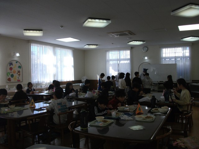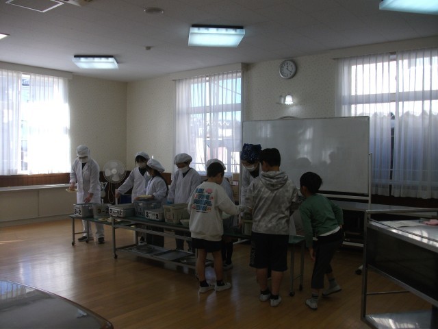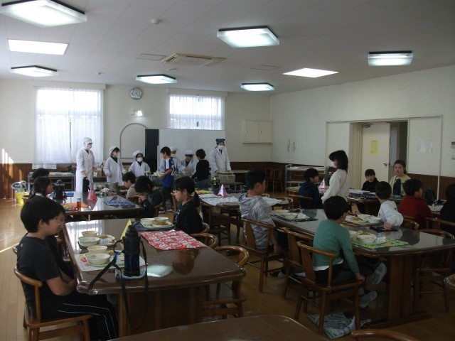 9日(月)ランチルームの使用は、3年2組でした。給食当番が身支度を整え、順番に配膳をしました。日直さんの号令で「いただきます」と元気に挨拶をしてから食事を始めました。