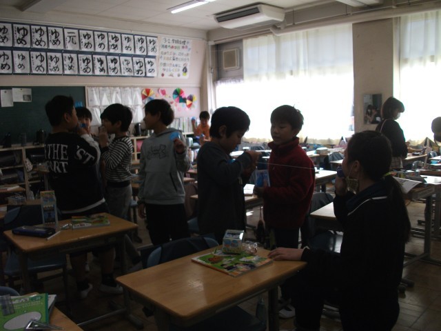10日(火)3時間目、3年2組は理科の時間でした。「音」の学習です。今回は、糸電話を使って会話をし、なぜ聞こえるのかを考えました。子どもたちは「もしもし」と言いながら、楽しそうに実験をしていました。