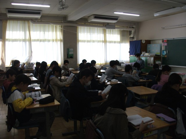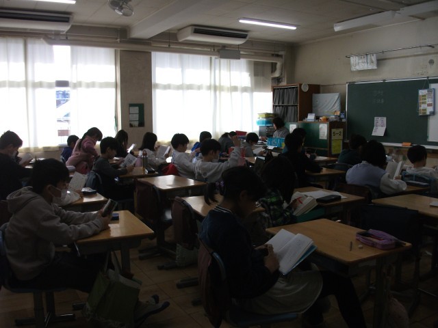 11日(火)高ヶ坂タイムの様子です。全学級、朝読書をしました。写真は4年1組から6年2組までです。各学級、静かに読書をしていました。この静けさこそ大事です。