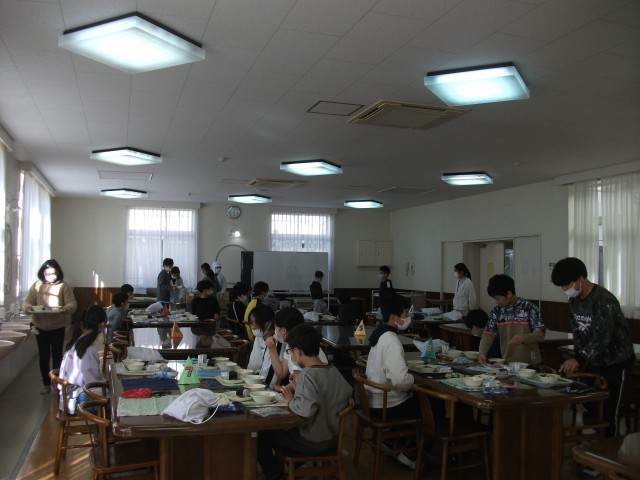 11日(水)のランチルームは、6年1組が使用しました。配膳が早くでき、ゆかりおにぎりを楽しみに頬張っていました。