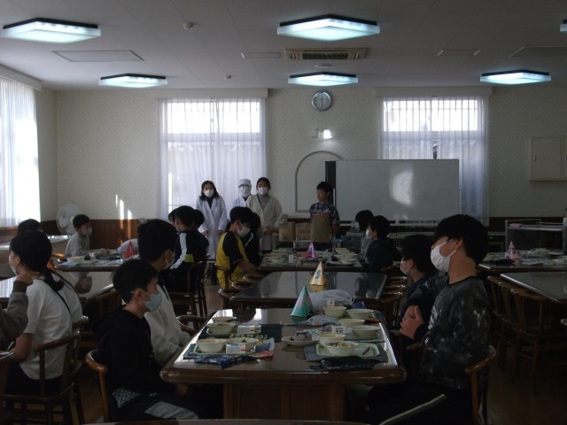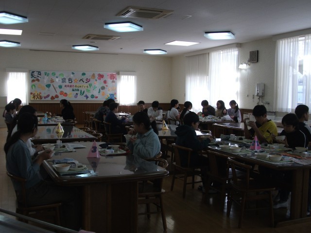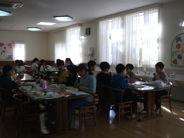 11日(水)のランチルームは、6年1組が使用しました。配膳が早くでき、ゆかりおにぎりを楽しみに頬張っていました。