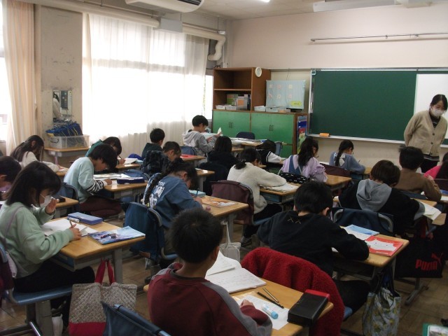 13日(金)6時間目、3年1組は国語の時間でした。言語領域の学習は、2組の先生と進めています。今回は、「漢字の意味」の学習から子どもたちが作った問題を2枚のプリントに分けて取り組みました。漢字は同じ音でも意味が違うことを利用しての問題です。自分の名前入りの問題が出て、子どもたちは嬉しそうでした。出題例として、「期と起」「福と服」「円と園」などがありました。子どもたちはそれぞれの文に合う漢字を選んで、みんなで答え合わせをしました。