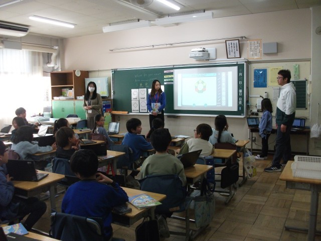 17日(火)5時間目、3年1組は外国語活動の時間でした。これまで学習してきた形の表現を使いながら、タブレットにデザインを描きました。子どもたちは時節柄、モミの木やリースなどのデザインを考えて描いていました。