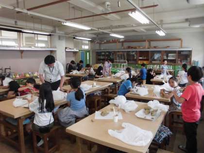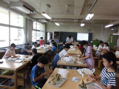 11日(火)3・4時間目、4年1組は図画工作の時間でした。「焼き物シーサーをつくろう」の学習の続きに取り組みました。今回は粘土をこねて、シーサーを仕上げました。