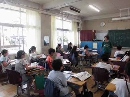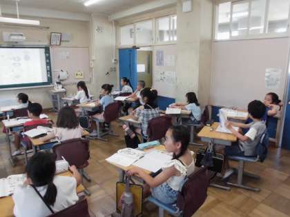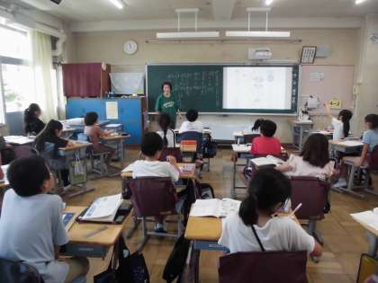 11日(火)4時間目、4年2組は国語の時間でした。言葉に関する学習は講師の先生が進めます。今回は、「漢字の広場」に取り組みました。3年生で習った漢字を使い、教科書に登場するそれぞれの人になったつもりで、夏の楽しみを文章に書きました。