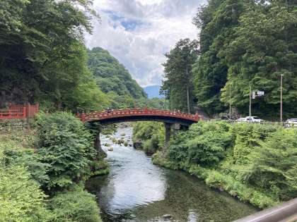 大谷川にかかる神橋です。行きは余裕がなかったのですが、バスに向かう時に見ることができました。きれいな水の流れに子どもたちも見入っていました。