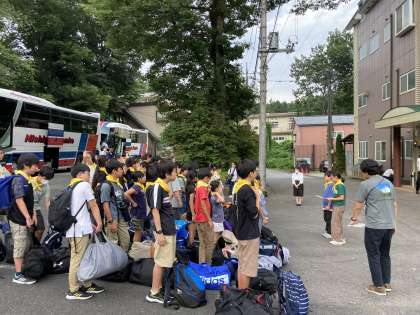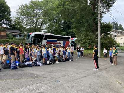 26日(金)午後4時30分、宿舎に到着しました。予定より20分遅くなりました。宿舎の前で開校式をしました。司会進行や代表の言葉は、室長が務めました。