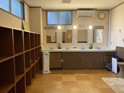 26日(金)午後5時から入浴です。写真は男性用の脱衣所とお風呂です。