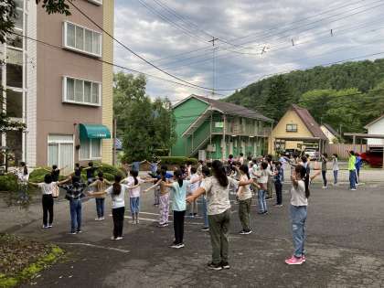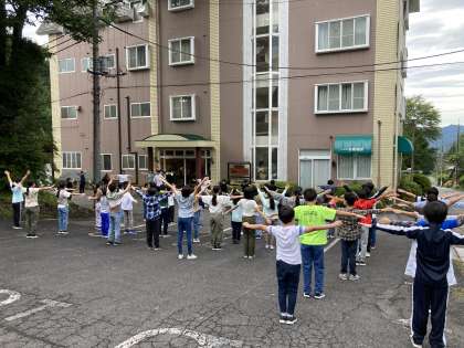 朝の会でのラジオ体操の様子です。昨夜はぐっすり眠れたという人が約半数いました。熱を出している人はいません。