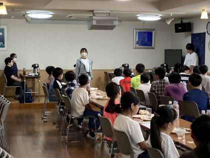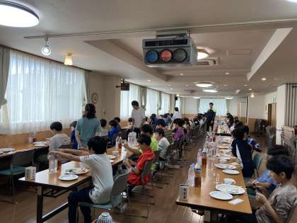 午前7時半、朝食を終えました。食事係のご馳走さまでしたに合わせて、みんなで挨拶をしました。