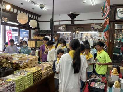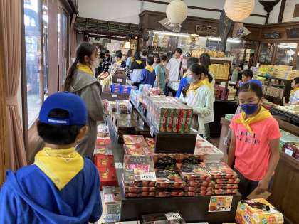 27日(土)午後1時40分、バスに乗りました。第一いろは坂を下りて日光東照宮近くのお店に向かいました。延期したお土産を買うためです。バスの中では寝ている人もいましが、ガイドさんが中禅寺湖や巫女石の話を再度してくださいました。朝、見られなかった人はここで納得していました。お店に着くと担任の先生からお小遣いの封筒を受け取りました。