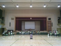朝食の様子です。テーブルにある2本のペットボトルが本日の水筒がわりです。