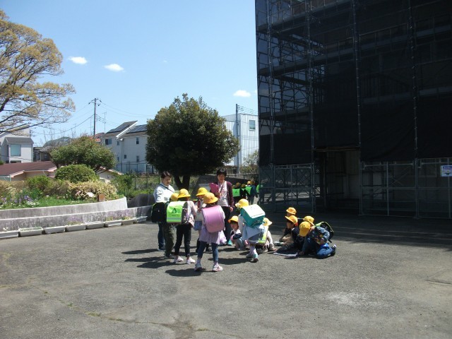 9日(水)正午過ぎ、ランドセルを背負った1年生が上校庭に集まりました。2回目の方面別下校です。5つのグループの人数確認をしてから、全員で「さようなら」と挨拶をしました。