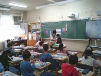 19日(月)3・4時間目、1年生と2年生はダンスの練習をしました。今回は、手首に飾りを着けて踊りました。1年1組は黄色、1年2組は青色、2年生はレインボーです。隊形移動が時間内にできるようになったり、動きのタイミングを合わせられるようになったりしています。ダンスの練習が終わると、徒競走の練習をしました。