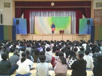 24日(水)3・4時間目、全学年の子どもたちが体育館に集合し、荒馬座の公演を観ました。2つ目の演目は「獅子舞」でした。「獅子に頭を噛まれると幸せになる」という説明を聞いた子どもたちは、お獅子がステー...