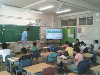 8日(水)1時間目、4年2組は体育の時間でした。ボール運動の「ポートボール」が始まりました。準備運動をしてから、先生の話を聞きました。どのような運動なのか、子どもたちの中からボランティアを募り、その...