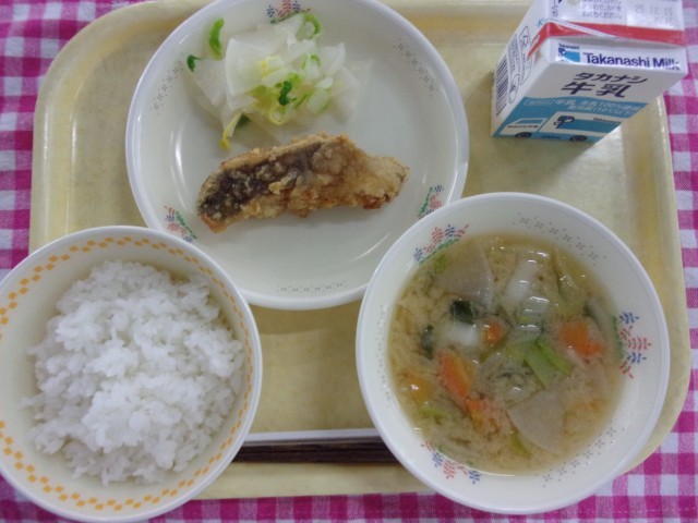 今日の給食(12/10) 公開日 2025/12/10 更新日 2025/12/10 給食 今日の給食は牛乳、町田のご飯、たらのピリ辛ソースかけ、野菜のゆず和え、町田野菜の味噌汁です。今日はまち☆ベジ献立として、町田産の米、町田で収穫された大根、白菜、小松菜、ねぎを使っています。