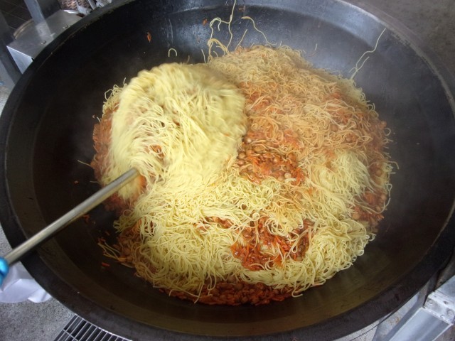 ソースを混ぜ合わせてスパゲッティに絡ませ、味つけをします。