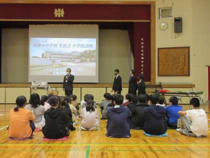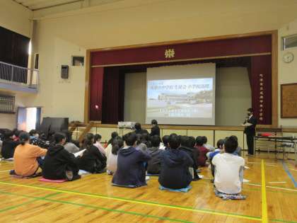 中学校の生徒会と担当の先生、それに校長先生もご来校くださいました。成瀬台中の生活や中学校の学習、それに部活動の様子などを紹介してくれました。6年生は興味深々で、話をしっかりと聞いていました。先輩として説明に来てくれる皆さんを待っていますよ!